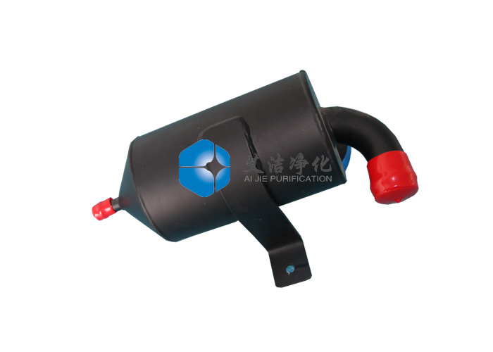 艾潔凈化生產的旋風式油氣分離器是讓氣液混合氣經過切向進氣道或是螺旋進氣道進入分離器內,使混合氣在分離器內旋轉運動,以此產生離心力來實現油滴的分離,它的分離機理與主動離心式油氣分離器相同,只是不需外界提供動力。