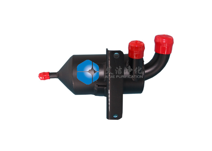艾潔凈化生產(chǎn)的旋風(fēng)式油氣分離器是讓氣液混合氣經(jīng)過切向進(jìn)氣道或是螺旋進(jìn)氣道進(jìn)入分離器內(nèi),使混合氣在分離器內(nèi)旋轉(zhuǎn)運動,以此產(chǎn)生離心力來實現(xiàn)油滴的分離,它的分離機(jī)理與主動離心式油氣分離器相同,只是不需外界提供動力。